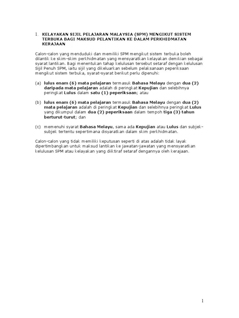 Calon yang memiliki sijil spm mengikut sistem terbuka. Spm ialah sijil pelajaran malaysia. Spp bil 01 2002 pekeliling kelayakan sijil pelajaran malaysia spm mengikut sistem terbuka bagi maksud pelantikan ke perkhidmatan awam pekeliling .
